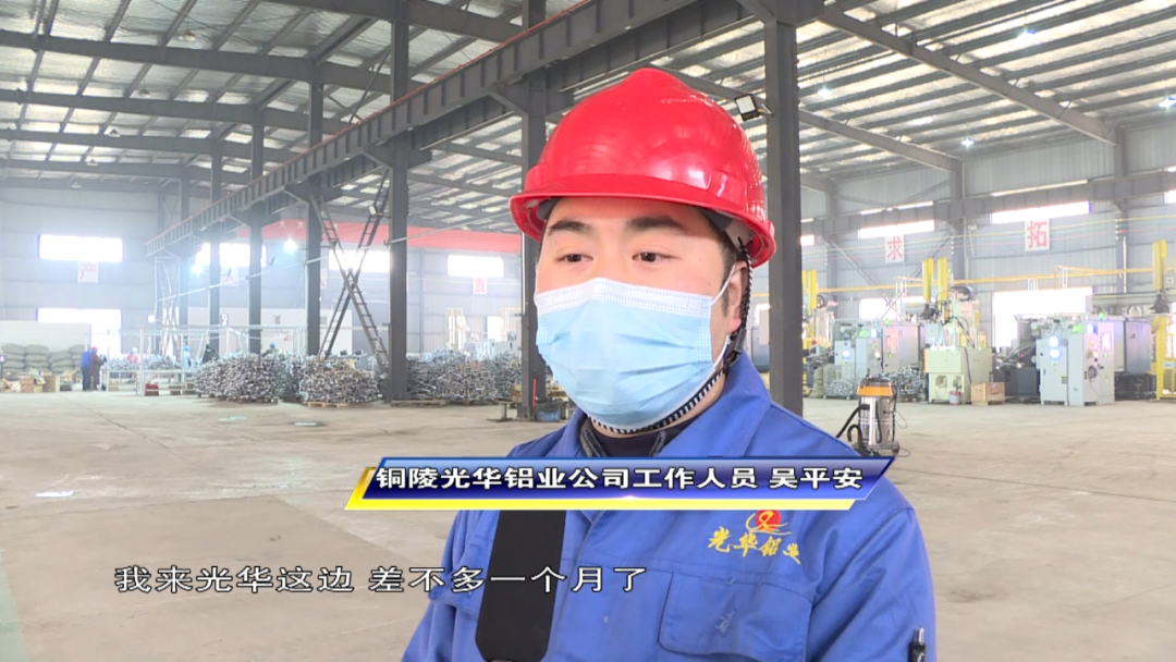 【铜陵光华铝业公司工作人员 吴平安】我来光华这边,差不多一个月了,觉得这边待遇挺好的,主要是家里面老人孩子可以有个照应。
