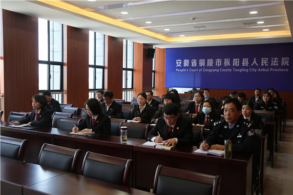 为进一步推动队伍教育整顿工作深入开展,弘扬英模精神,激励干警担当奋进,3月29日上午,枞阳法院组织干警集中观看了安徽政法英模先进事迹报告网络展播,营造了学习英模、崇尚英模、争当英模的良好风尚。