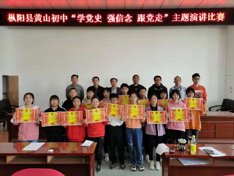 为纪念中国共产党建党100周年,3月26日黄山初中在多功能报告厅举办了“学党史,强信念,跟党走”主题演讲比赛,歌颂党的百年光辉历史和丰功伟绩,坚定青少年“不忘初心学党史,牢记使命跟党走”的理想信念。