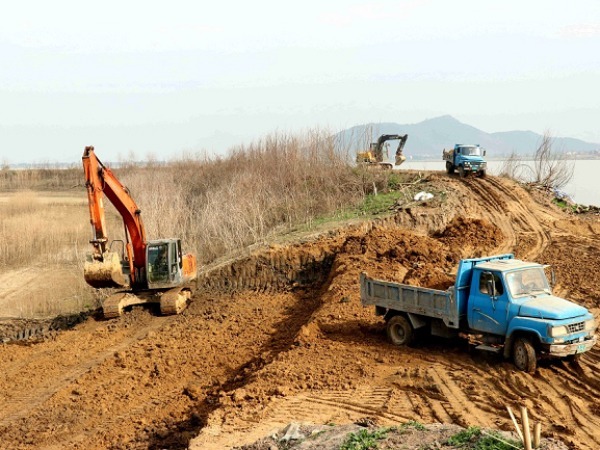 “正月初六,我们就已经开始动工了,安排了4台挖机、16台运输车,每天作业10小时以上,预计1号溃口4天内即可竣工”,会宫镇幸福圩堵口复堤工程施工负责人高骥说道。