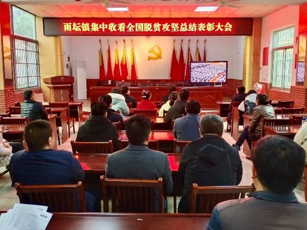 2021年2月25日上午,金社镇组织机关全体人员集中收看收听全国脱贫攻坚总结表彰大会直播,全镇12个村分别组织村“两委”干部、驻村扶贫工作队通过电视、网络等平台收看收听大会直播。